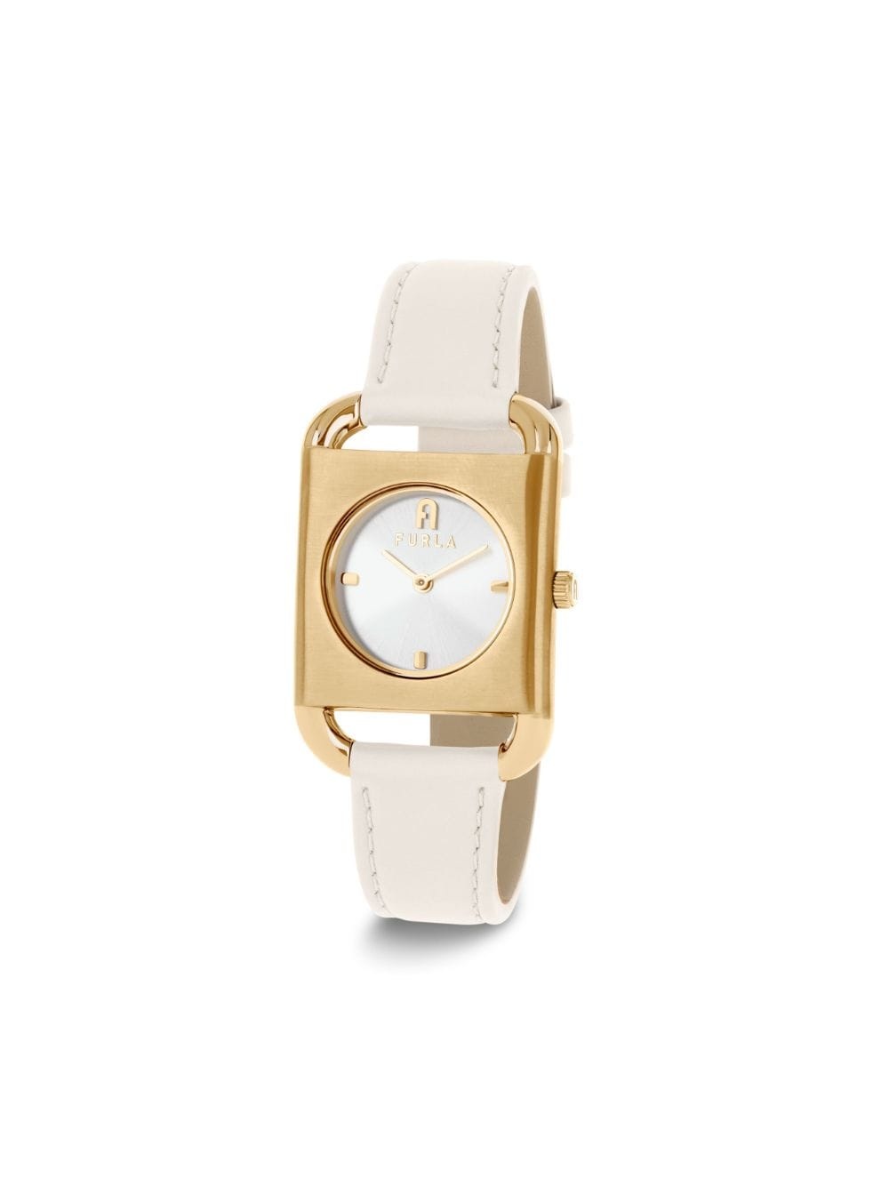 Arco Square 28mm Highlights - White - Gold-tone - Stainless steel case - Leather strap - Square face - Quartz movement - Index dial - Stick hands - Logo-engraved gold-tone hardware - Buckle-strap fastening Imported