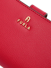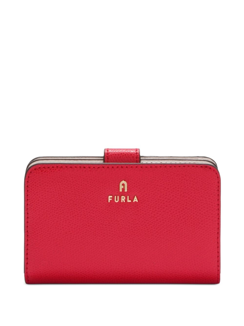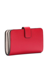 Camelia leather flap wallet Highlights - Red - Textured leather - Gold-tone logo - Press-stud fastening - Internal card slots - Zip-coin purse Imported Composition Lining: Viscose 100% Outer: Calf Leather 100% SIZE & FIT Measurement DEPTH 1.37 in(3.5 cm) HEIGHT 3.54 in(9 cm) WIDTH 5.51 in(14 cm)