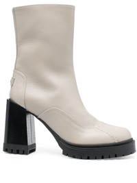 Climb leather ankle boots light grey/black calf leather logo patch to the rear tonal stitching side zip fastening round toe branded footbed rubber lug sole 95mm block heel Made in Italy Composition Leather 100% SIZE & FIT Measurement CIRCUMFERENCE 10.62 in(27 cm) HEEL 3.54 in(9 cm) HEIGHT 6.49 in(16.5 cm) Sole height 0.78 in(2 cm)