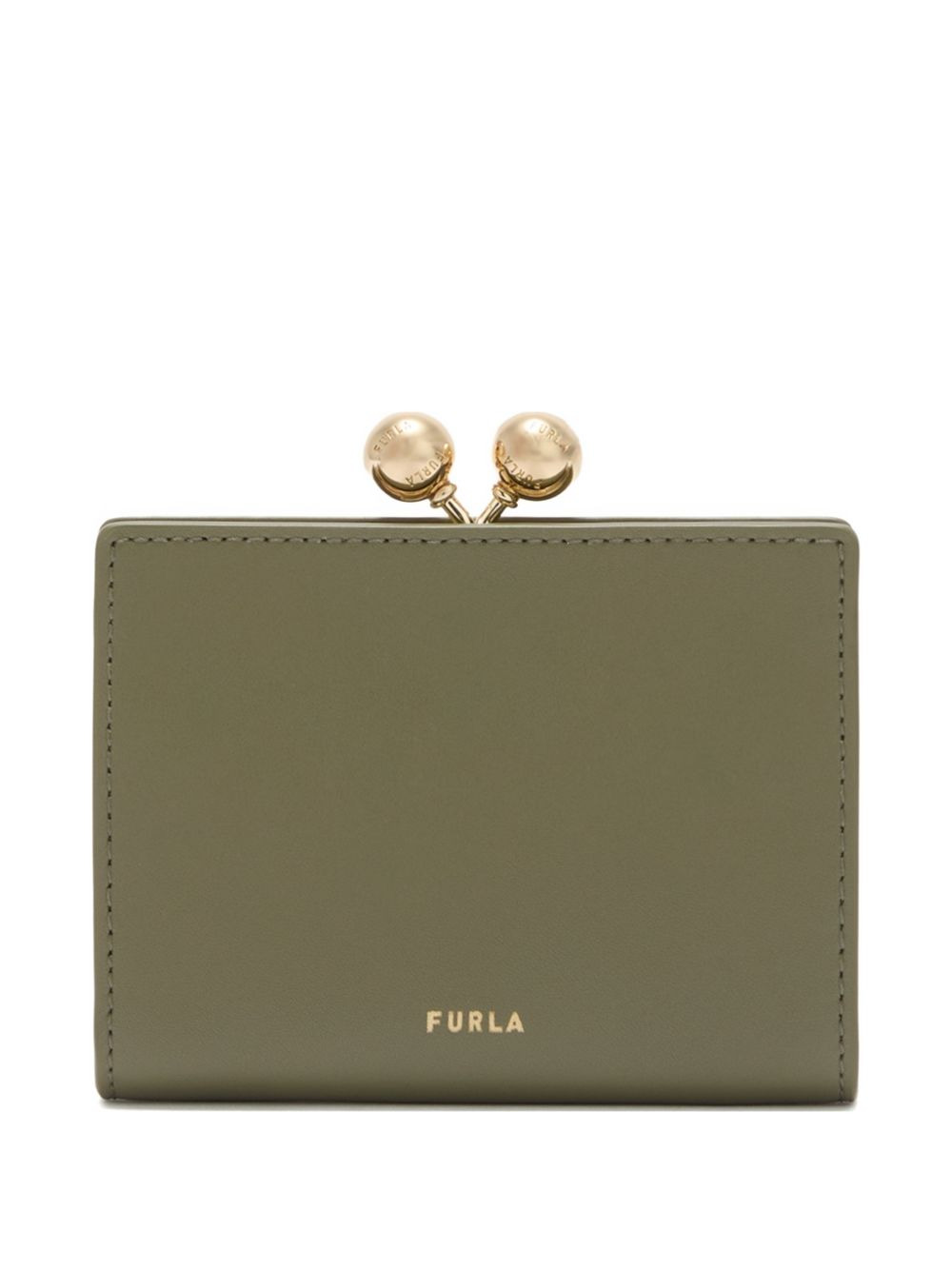 dots-clasp leather coin purse Highlights - Olive green - Metal clasp - Open compartment - Slip pockets - Logo print Imported Composition Calf Leather 100% SIZE & FIT Measurement LENGTH 4.72 in(12 cm) DEPTH 1.37 in(3.5 cm) WIDTH 3.54 in(9 cm)