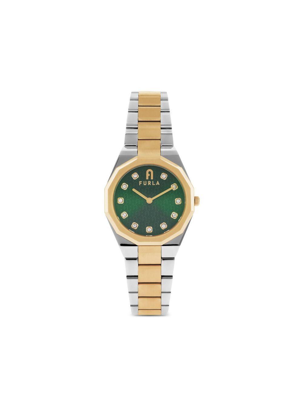 Furla 1927 35mm Highlights - Green dial - Octagonal case shape - 35mm case size - Crystal embellishment - Quartz movement - Crown - This item comes with a standard one-year warranty from the boutique. Imported SIZE & FIT Measurement DIAMETER 1.37 in(3.5 cm) Thickness 0.19 in(0.5 cm)