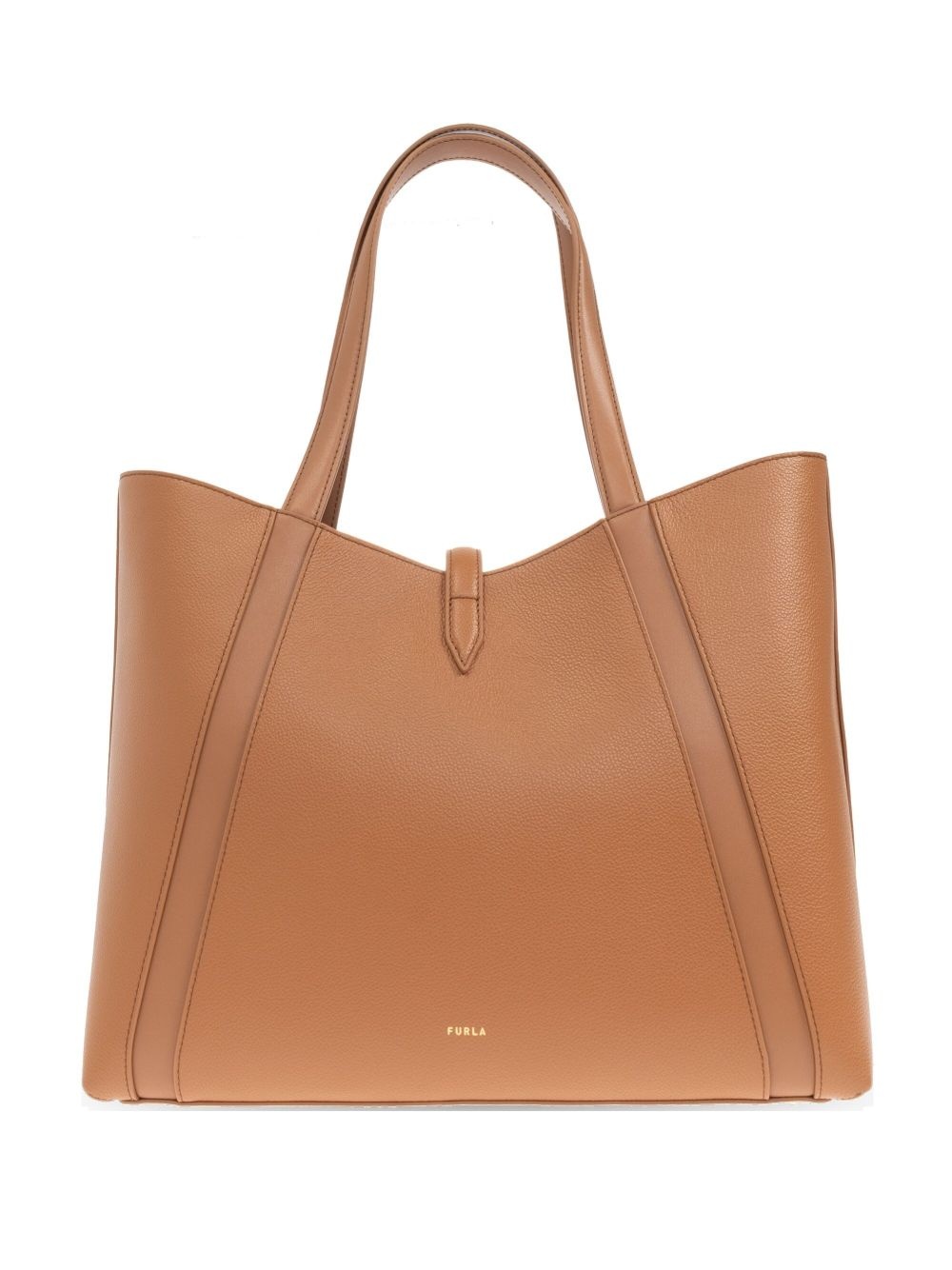 Goccia leather-panelled clasp tote bag Highlights - Brown - Leather - Central clasp fastening - Panelled design - Two top handles Imported Composition Outer: Leather 100% Lining: Polyester 90%, Leather 10%