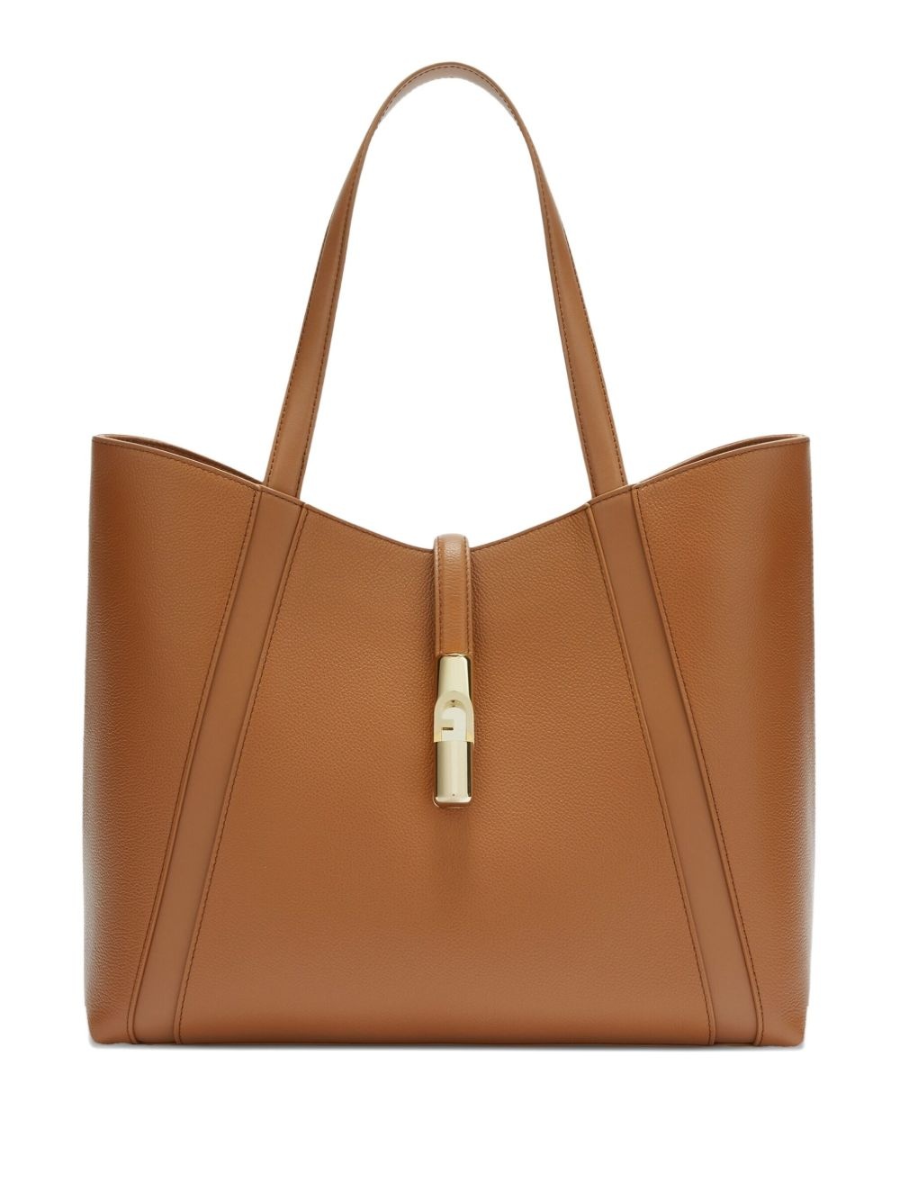 Goccia tote bag Highlights - Brown - Dual shoulder straps - Tapered sides - Tonal stitching - Logo stamp to the rear - Central clasp detail Imported Composition Lining: Polyester 90%, Leather 10% Outer: Calf Leather 100% SIZE & FIT Measurement DEPTH 4.33 in(11 cm) HEIGHT 12.2 in(31 cm) WIDTH 13.18 in(33.5 cm)