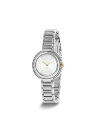 Icon Shape 29.5mm Highlights - Silver-tone - Stainless steel - Crystal-encrusted bezel - Round face - Engraved logo - Stick hands - Push-button folding clasp Imported