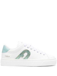 Joy leather sneakers Highlights - White/mint green - Leather - Metallic effect - Logo patch to the side - Logo print to the side - Logo-print tongue - Round toe - Front lace-up fastening - Branded insole - Flat rubber sole Imported Composition Outer: Leather 70%, Polyurethane 15%, Polyester 7%, Polytrimethylene Terephthalate (PTT) 7% Cotton 1% Lining: Polyurethane 80%, Leather 2% SIZE & FIT Measurement HEEL 1.77 in(4.5 cm) Sole height 0.78 in(2 cm)