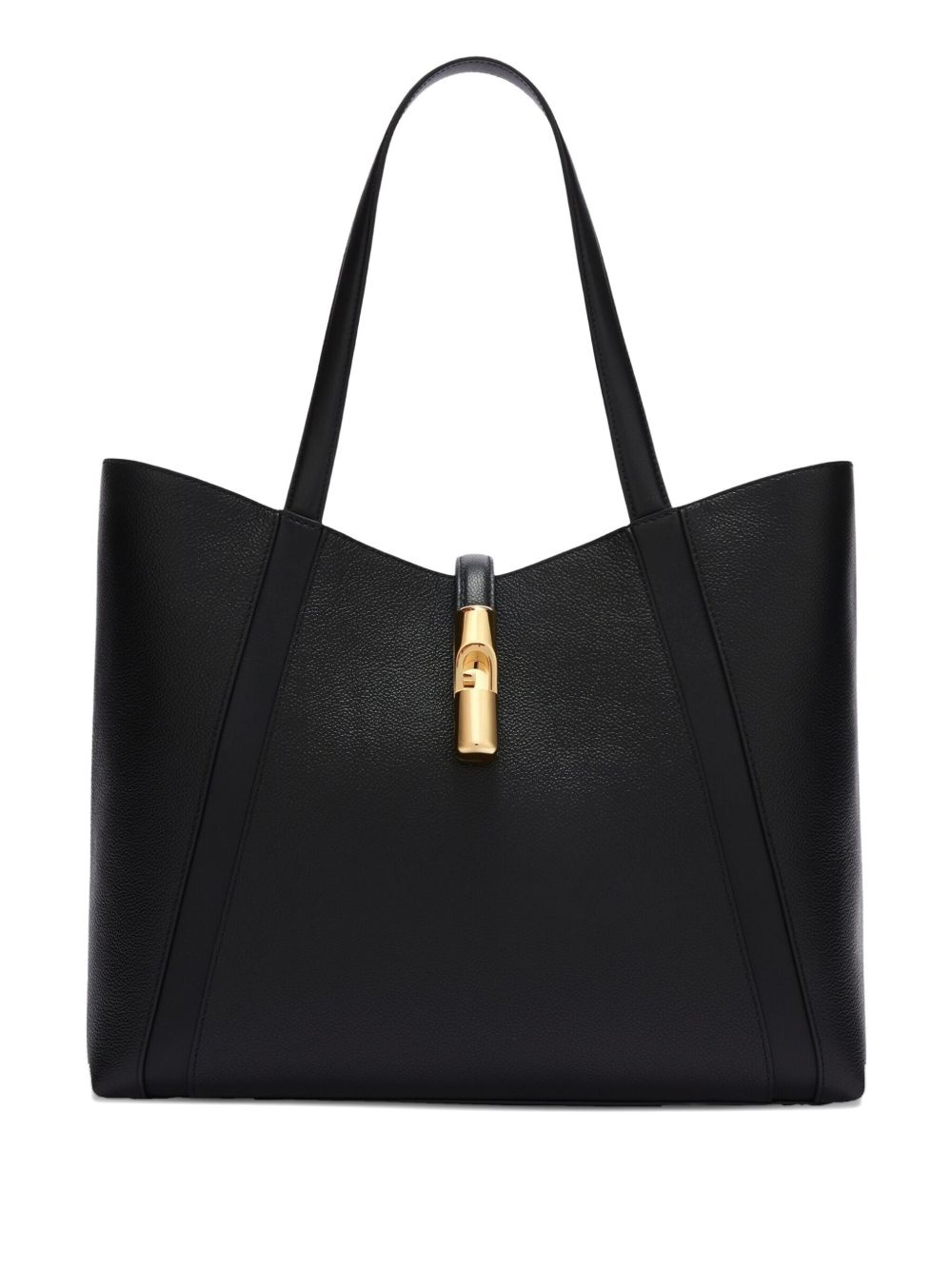 large Goccia tote bag Highlights - Black - Gold-tone hardware - Top zip closure - Dual shoulder straps - Logo stamp to the rear Imported Composition Outer: Calf Leather 100% Lining: Polyester 90%, Leather 10% SIZE & FIT Measurement DEPTH 4.33 in(11 cm) HEIGHT 12.2 in(31 cm) WIDTH 13.18 in(33.5 cm)