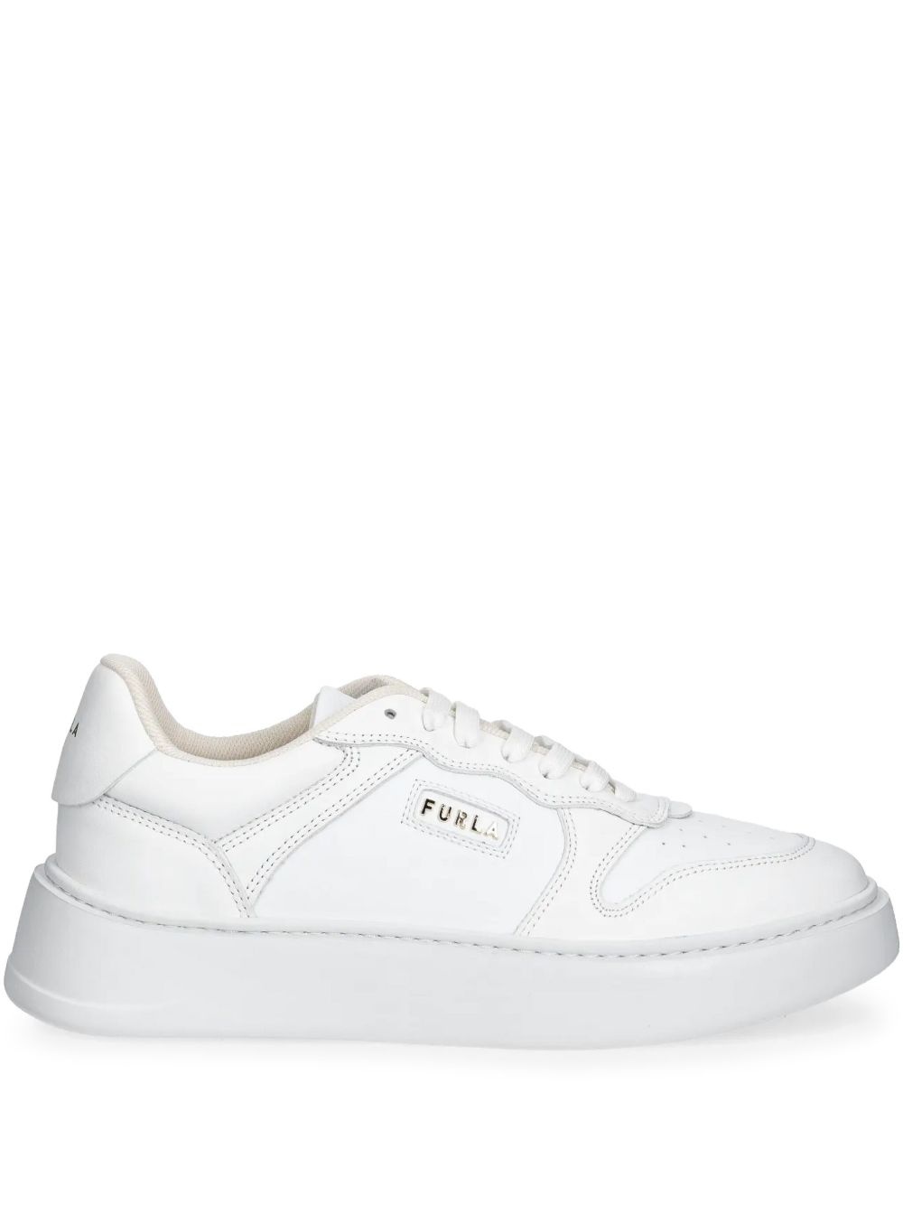 logo-applique sneakers Highlights - White - Front lace-up fastening - Padded ankle - Flat rubber sole - Perforated toebox Imported Composition Sole: Rubber 100% Lining: Fabric 100% Outer: Leather 100%