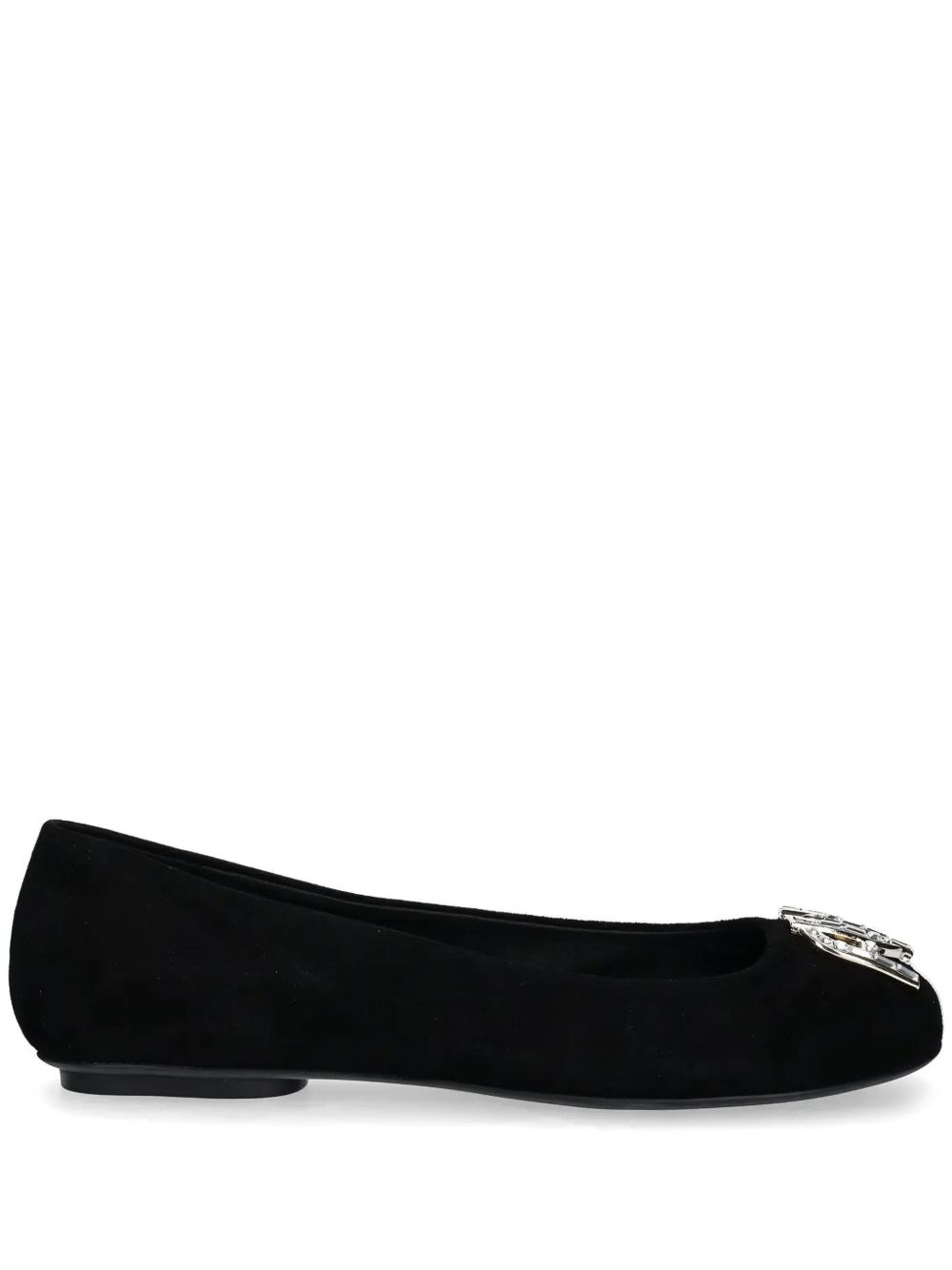 logo plaque ballerinas Highlights - Black - Slip-on style - Gold-tone logo plaque - Round toe - Rubber sole Imported Composition Suede 100%