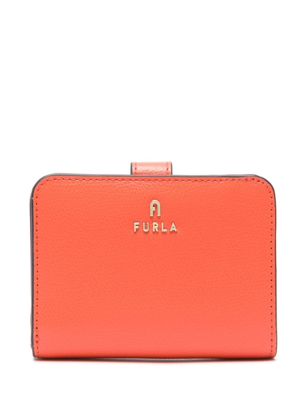 medium Camelia leather wallet Highlights - Burnt orange - Calf leather - Grained texture - Tonal stitching - Rectangle shape with curved corners - Bi-fold design - Gold-tone logo lettering to the front - Zip-fastening compartment - Internal note compartments - Internal card slots - Debossed internal logo - Contrast lining - Gold-tone hardware - Strap closure and press-stud fastening - This piece comes complete with a protective dust bag. Imported Composition Outer: Calf Leather 100% Lining: Viscose 100% SIZE & FIT Measurement DEPTH 0.78 in(2 cm) LENGTH 3.34 in(8.5 cm) WIDTH 4.72 in(12 cm)