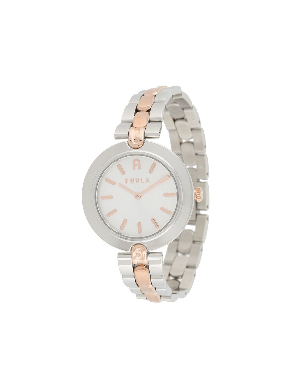Milano two-tone watch Highlights - Silver/rose gold - Two-tone design - Stainless steel case - Stainless steel link bracelet - Round face - Mineral glass Imported SIZE & FIT Model measurements Height 5 ft 9 in(1.75 m) Bust/Chest 32.67 in(83 cm) Hips 36.22 in(92 cm) Waist 24.8 in(63 cm) Measurement CIRCUMFERENCE 7.24 in(18.4 cm) DIAMETER 1.33 in(3.4 cm) Thickness 0.31 in(0.8 cm) WIDTH 0.47 in(1.2 cm)
