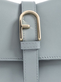 mini Flow leather tote bag Highlights - Light blue - Leather - Top handle - Adjustable and removable leather strap - Curved silhouette - Interior open pocket - Engraved logo brand - Flap and magnetic button closure Imported Composition Outer: Calf Leather 100% SIZE & FIT Measurement DEPTH 3.14 in(8 cm) HEIGHT 4.52 in(11.5 cm) WIDTH 8.26 in(21 cm)