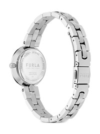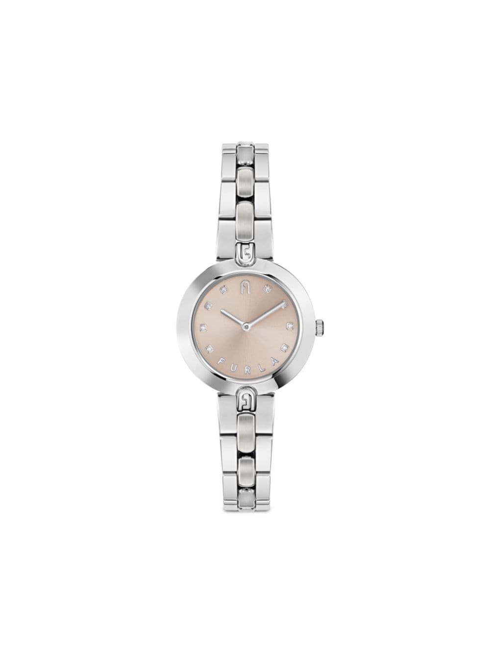 Logo Links 28mm Highlights - Silver-tone - Stainless steel - Geometric dial - Logo-engraved bezel - Logo-engraved silver-tone hardware - Stick hands - Push-button folding clasp Imported