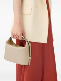 Nuvola mini bag Highlights - Sand beige - Grained finish - Top handle - Detachable shoulder strap - Zip closure - Logo print Imported Composition Outer: Calf Leather 100% Lining: Polyester 90%, Leather 10% SIZE & FIT Measurement DEPTH 2.95 in(7.5 cm) HEIGHT 6.29 in(16 cm) WIDTH 8.66 in(22 cm)
