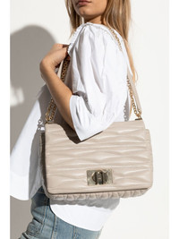 quilted shoulder bag Highlights - Beige - Chain-link shoulder strap - Foldover top - Twist-lock fastening - Main compartment Imported Composition Outer: Lamb Skin 100% Lining: Fabric 100% SIZE & FIT Measurement DEPTH 2.75 in(7 cm) HEIGHT 7.48 in(19 cm) WIDTH 9.84 in(25 cm)