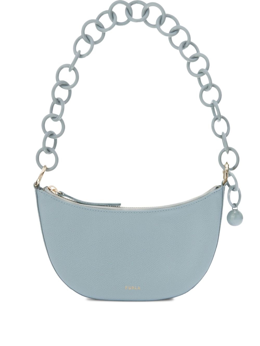 Sfera mini bag Highlights - Sky blue - Top zip fastening - Single chain-link top handle - Internal card slots - This piece comes complete with a protective dust bag. Imported Composition Lining: Polyester 90%, Leather 10% Outer: Leather 100% SIZE & FIT Measurement DEPTH 1.57 in(4 cm) HEIGHT 4.72 in(12 cm) WIDTH 6.29 in(16 cm)