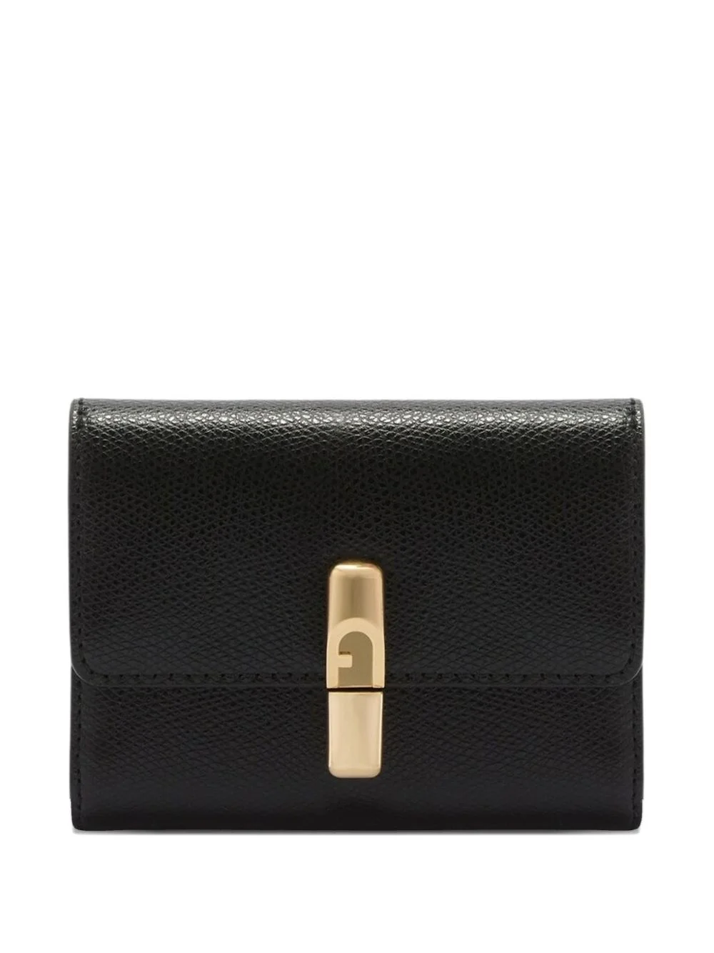 small Iride grained wallet Highlights - Black - Grained finish - Gold-tone hardware - Eight inner credit card slots - Inner banknote compartment Imported Composition Outer: Grained Calf Leather 100% SIZE & FIT Measurement DEPTH 0.78 in(2 cm) LENGTH 4.72 in(12 cm) WIDTH 3.54 in(9 cm)