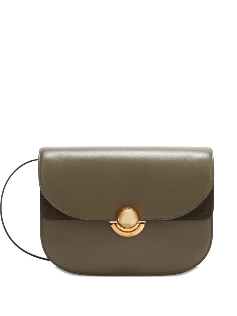 small Sfera cross body bag Highlights - Olive green - Flap closure - Gold-tone hardware - Adjustable shoulder strap - Curved silhouette Imported Composition Outer: Suede 100%, Calf Leather 100% Lining: Polyurethane 40%, Nylon 40%, Polyester 20% SIZE & FIT Measurement DEPTH 2.95 in(7.5 cm) HEIGHT 5.9 in(15 cm) WIDTH 9.44 in(24 cm)