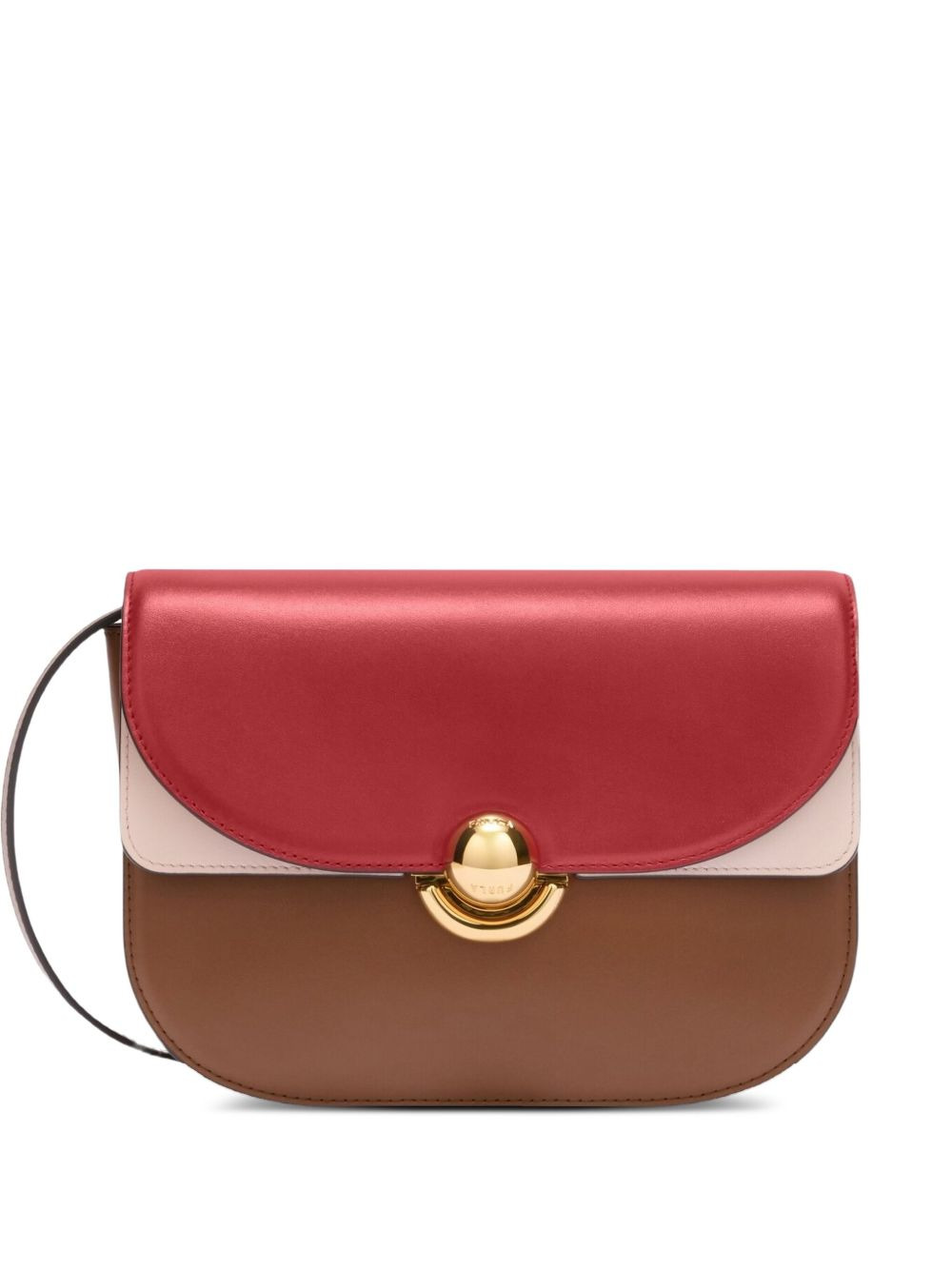 small Sfera crossbody bag Highlights - Red, brown and beige - Leather - Half-moon shape - Gold-tone clasp - Adjustable strap - Curved top line Imported Composition Lining: Leather 100% Outer: Calf Leather 100% SIZE & FIT Measurement DEPTH 2.95 in(7.5 cm) HEIGHT 5.9 in(15 cm) STRAP 47.24 in(120 cm) WIDTH 9.44 in(24 cm)