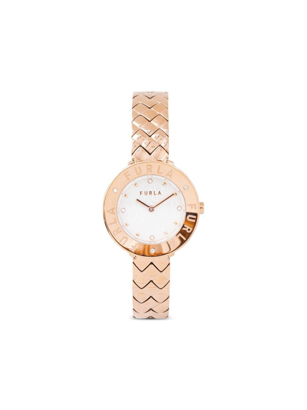 stainless steel quartz 30mm Highlights - Rose gold-tone - 30mm - Stainless steel - Round face - Crystal dial - Stick hands - Quartz movement - Logo-engraved bezel - Screw-down crown - Link bracelet - This item comes with a standard one-year warranty from the boutique. Imported SIZE & FIT Measurement DIAMETER 1.18 in(3 cm)