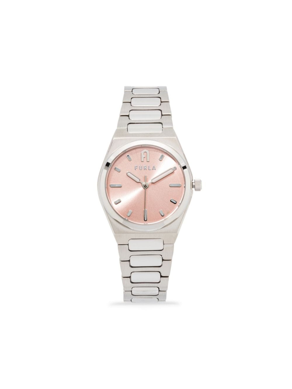 Tempo Mini Small 30mm Highlights - Stainless steel case - Quartz movement - Silver-tone - Baton dial - Baton hands - Light pink index dial - Arch logo motif - Round face - Glass - Screw-down crown - Stainless steel link bracelet - Push-button folding clasp - This item comes with a standard one-year warranty from the boutique. Imported SIZE & FIT Model measurements Height 5 ft 9 in(1.76 m) Bust/Chest 31.1 in(79 cm) Hips 36.61 in(93 cm) Waist 24.8 in(63 cm) Measurement CIRCUMFERENCE 7.24 in(18.4 cm) DIAMETER 1.14 in(2.9 cm) Thickness 0.31 in(0.8 cm) WIDTH 0.86 in(2.2 cm)