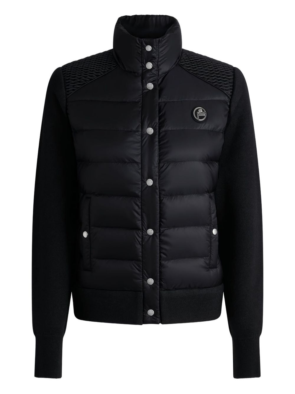 Acarim panelled puffer jacket Highlights - Black - Quilted panels - Knitted long sleeves - Press-stud fastening - High collar - Side pockets - Logo applique Imported Composition Polyamide 100% Washing instructions Read Manufacturer Guidelines