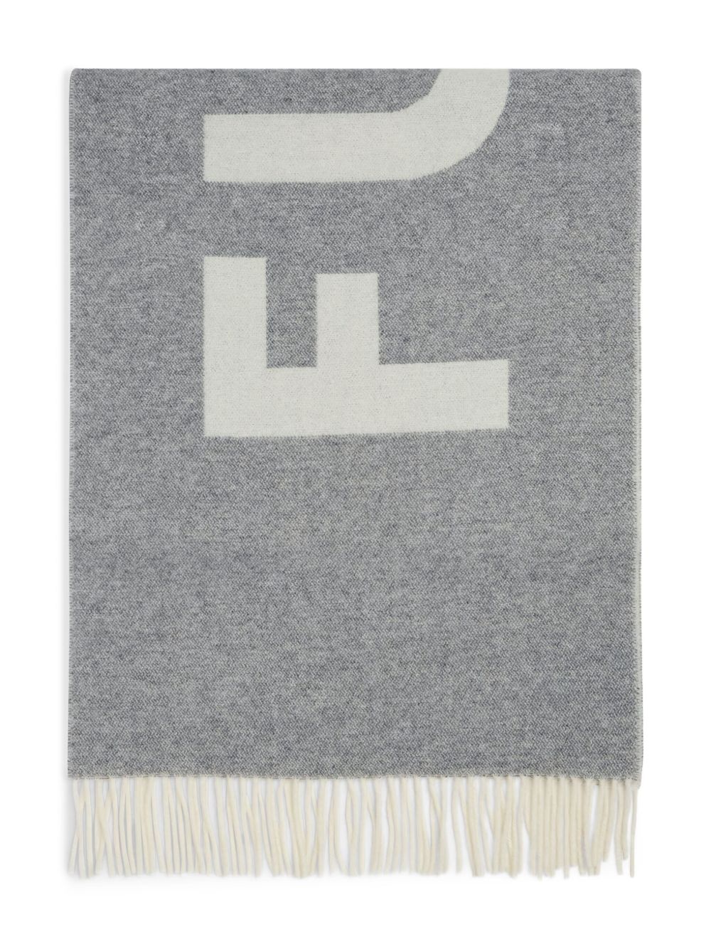 logo-jacquard scarf Highlights - Medium grey - Jacquard logo motif - Fringed edge - Rectangle shape Made in Italy Composition Outer: Wool 100% SIZE & FIT Measurement LENGTH 86.61 in(220 cm) WIDTH 19.68 in(50 cm) Washing instructions Hand Wash