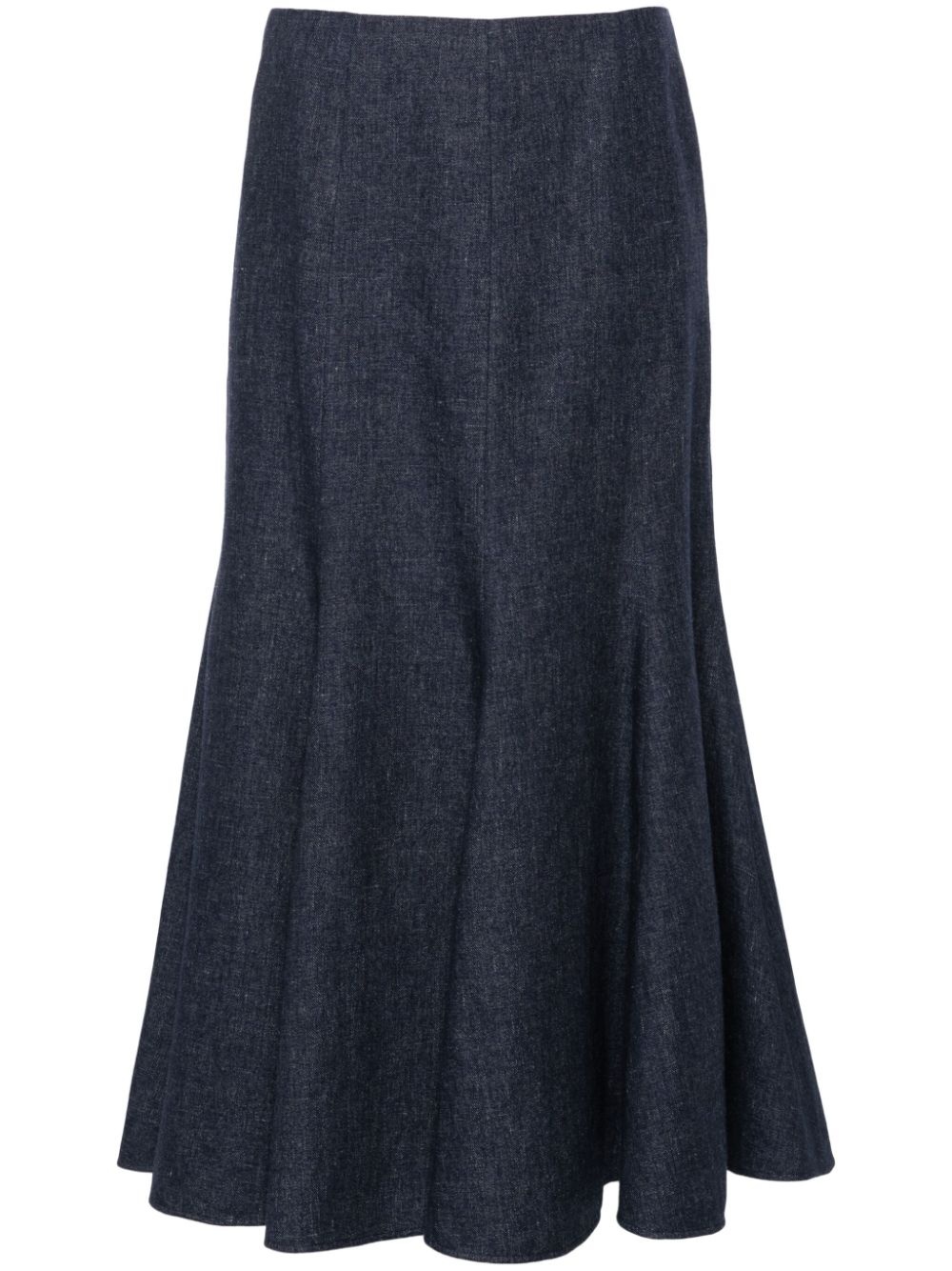 Amy midi skirt Highlights - Navy blue - Chambray - Twill weave - Rear zip fastening - Fluted skirt - Straight hem - Mid-length Made in Italy Composition Outer: Linen/Flax 49%, Virgin Wool 30%, Silk 21% Lining: Cupro 100% Washing instructions Dry Clean Only