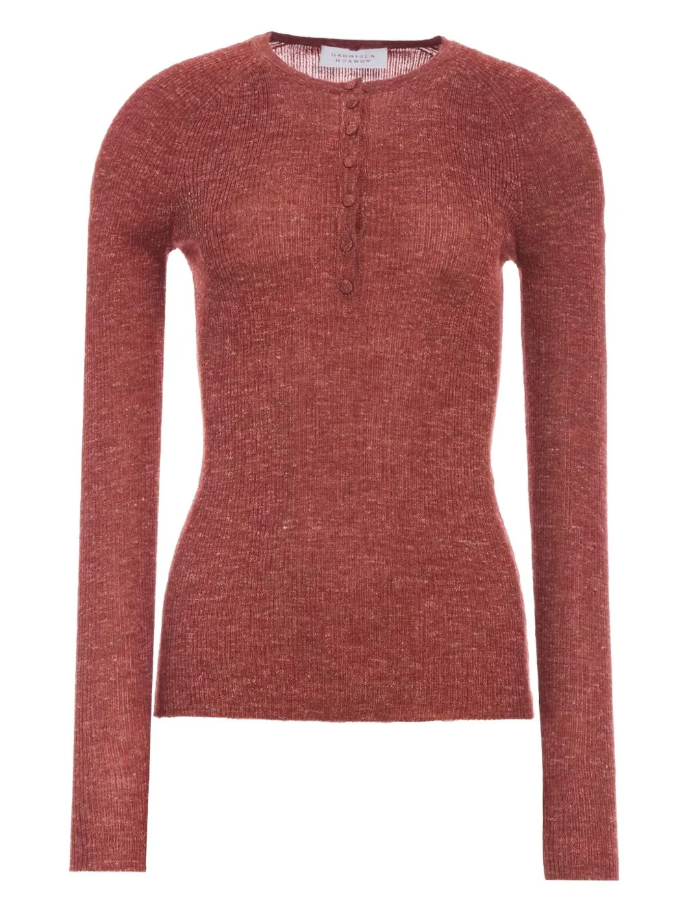 Anges Knit Henley in Burnt Sienna Cashmere Silk with Hemp