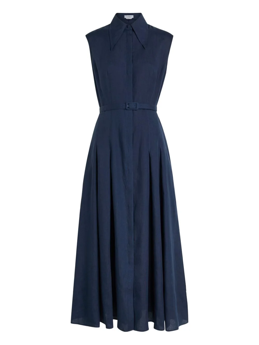 belted collared midi dress Highlights - Electric navy - Collared - Sleeveless - Button fastening - Belt - Pleated skirt Imported Composition Linen/Flax 100% Washing instructions Read Manufacturer Guidelines