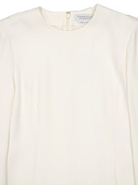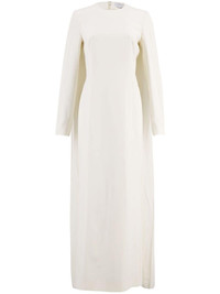 Carlota gown Highlights - Ivory white - Wool-silk blend - Draped design - Cape design - Pleat detailing - Round neck - Concealed rear zip fastening - Long sleeves - Column silhouette - Long length - Straight hem Made in Italy Composition Silk 73%, Wool 27%