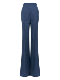 chambray trousers Highlights - Indigo blue - Concealed front fastening - Belted waist tabs - Two side inset pockets - Pressed crease Made in Italy Composition Virgin Wool 49%, Wool 30%, Linen/Flax 21% Washing instructions Dry Clean Only