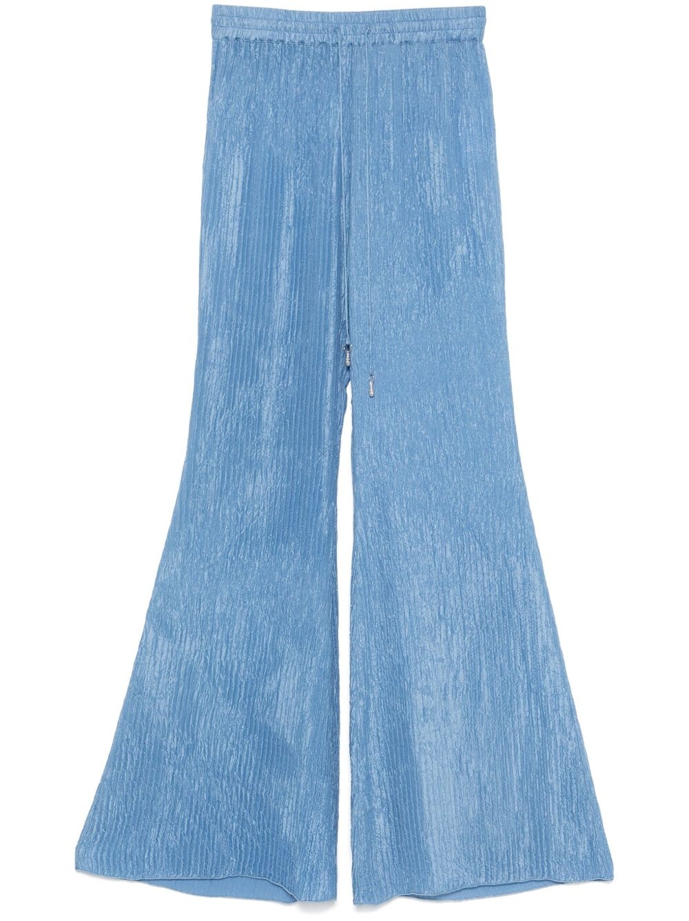 Claude trousers Highlights - Cerulean blue - Elasticated drawstring waistband - Seersucker texture - Flared hem Made in Italy Composition Silk 100% SIZE & FIT Model measurements Height 5 ft 10 in(1.78 m) Bust/Chest 33.85 in(86 cm) Hips 36.61 in(93 cm) Waist 26.77 in(68 cm) FittingInformation Designed with a flared hem, these trousers allow for a close fit at the waist with a slim fit over the leg and widening towards the hem The elasticated waist allows for a comfortable fit Made from a lightweight non-stretch fabric