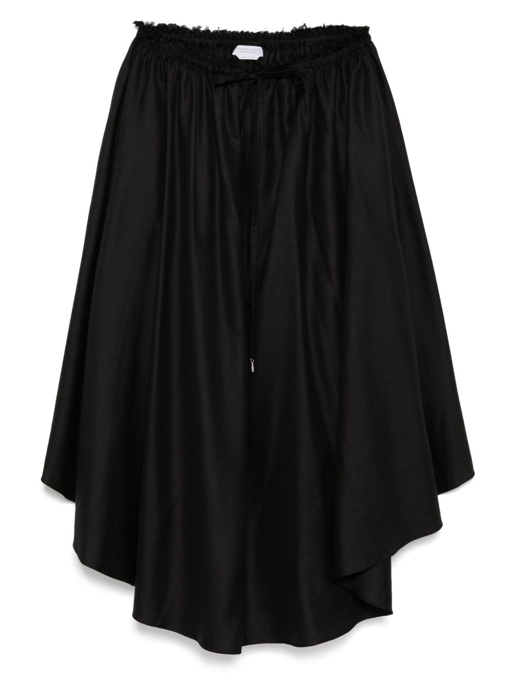 Dea asymmetric skirt Highlights - Black - Elasticated drawstring waistband - Asymmetric design Made in Italy Composition Wool 49%, Silk 30%, Linen/Flax 21% SIZE & FIT Measurement LENGTH 42.91 in(109 cm) WAIST 26.77 in(68 cm) FittingInformation Designed with an asymmetric hem, this skirt is intended to be worn just below the waist The tie fastening gives an adaptable and personalised fit Made from a midweight non-stretch fabric
