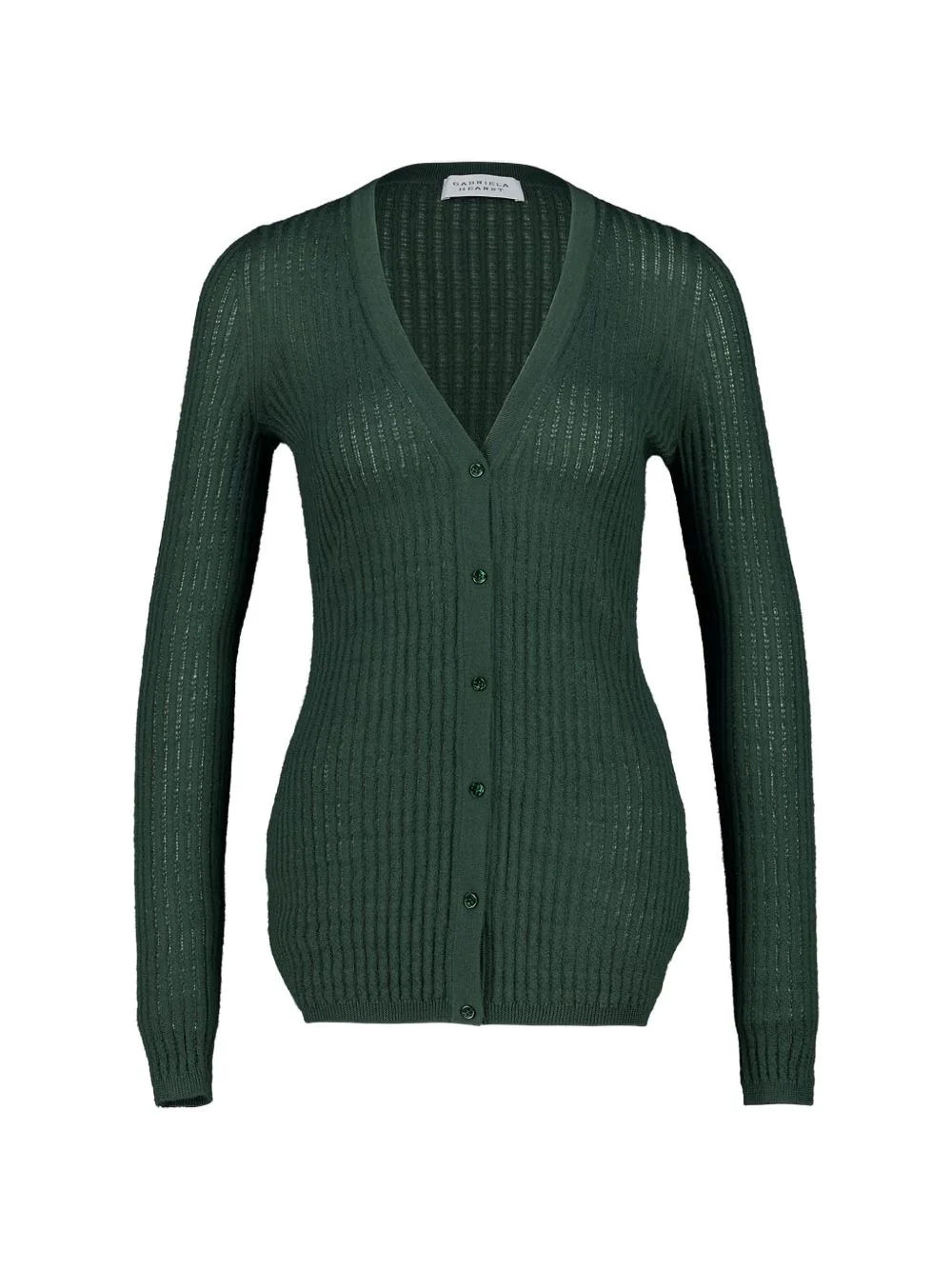 Emma pointelle cardigan Highlights - English green - Pointelle knit - V-neck - Front button fastening - Long sleeves - Ribbed knit Imported Composition Cashmere 70%, Silk 30% Washing instructions Read Manufacturer Guidelines