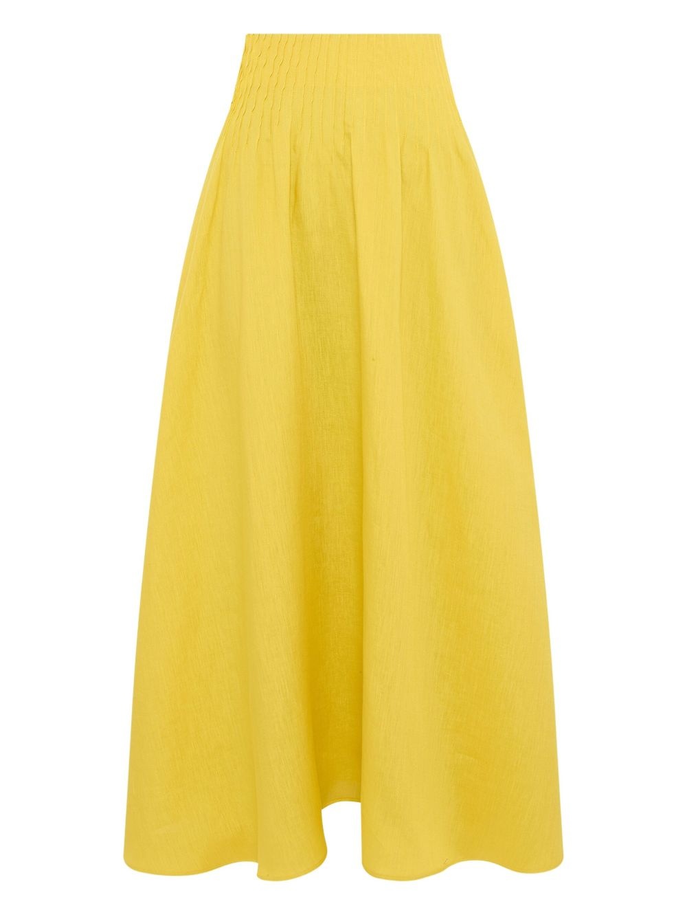 flared skirt Highlights - Yellow - High-waisted - Pleat detailing - Straight hem - Long length Made in Italy Composition Linen/Flax 100% SIZE & FIT FittingInformation This midi-length skirt is intended to be worn just below the waist Made from a midweight non-stretch fabric