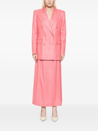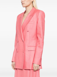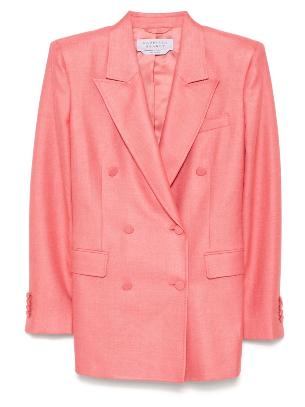 Gavin blazer Highlights - Watermelon pink - Silk-virgin wool blend - Double-breasted button fastening - Notched lapels - Long sleeves - Buttoned cuffs - Fabric-covered buttons - Chest welt pocket - Two front flap pockets - Italian rear vents - Internal pocket - Shoulder pads - Straight hem - Full lining Made in Italy Composition Lining: Cupro 100% Outer: Silk 51%, Virgin Wool 49% SIZE & FIT Model measurements Height 5 ft 9 in(1.76 m) Bust/Chest 31.1 in(79 cm) Hips 35.03 in(89 cm) Waist 24.4 in(62 cm) Measurement BUST 36.22 in(92 cm) LENGTH 28.34 in(72 cm) Shoulder Width 17.32 in(44 cm) SLEEVE LENGTH 24.8 in(63 cm) WAIST 33.85 in(86 cm) FittingInformation Designed for a slim fit that sits just away from the body offering a close yet comfortable fit The internal shoulder pads offer a structured shape Made from a midweight non-stretch fabric