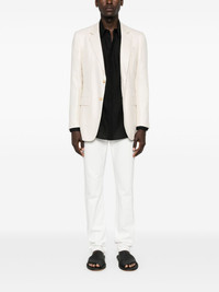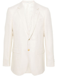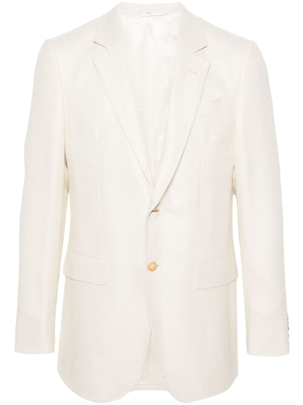Irving single-breasted blazer Highlights - Ivory white - Virgin wool-silk blend - Textured finish - Dart detailing - Notched lapels - Front button fastening - Long sleeves - Buttoned cuffs - Chest welt pocket - Two front flap pockets - English rear vents - Straight hem - Full lining Made in Italy Composition Lining: Viscose 100% Outer: Virgin Wool 88%, Silk 12% SIZE & FIT Model measurements Height 6 ft 2 in(1.89 m) Bust/Chest 34.64 in(88 cm) Hips 39.76 in(101 cm) Waist 29.52 in(75 cm) FittingInformation Designed for a slim fit, offering a comfortable fit that sits just away from the body The vented hem offers movement at the rear Made from a midweight non-stretch fabric This piece fits true to size – take your usual size
