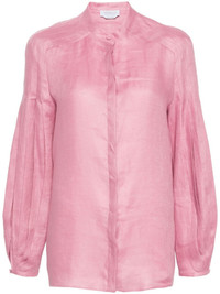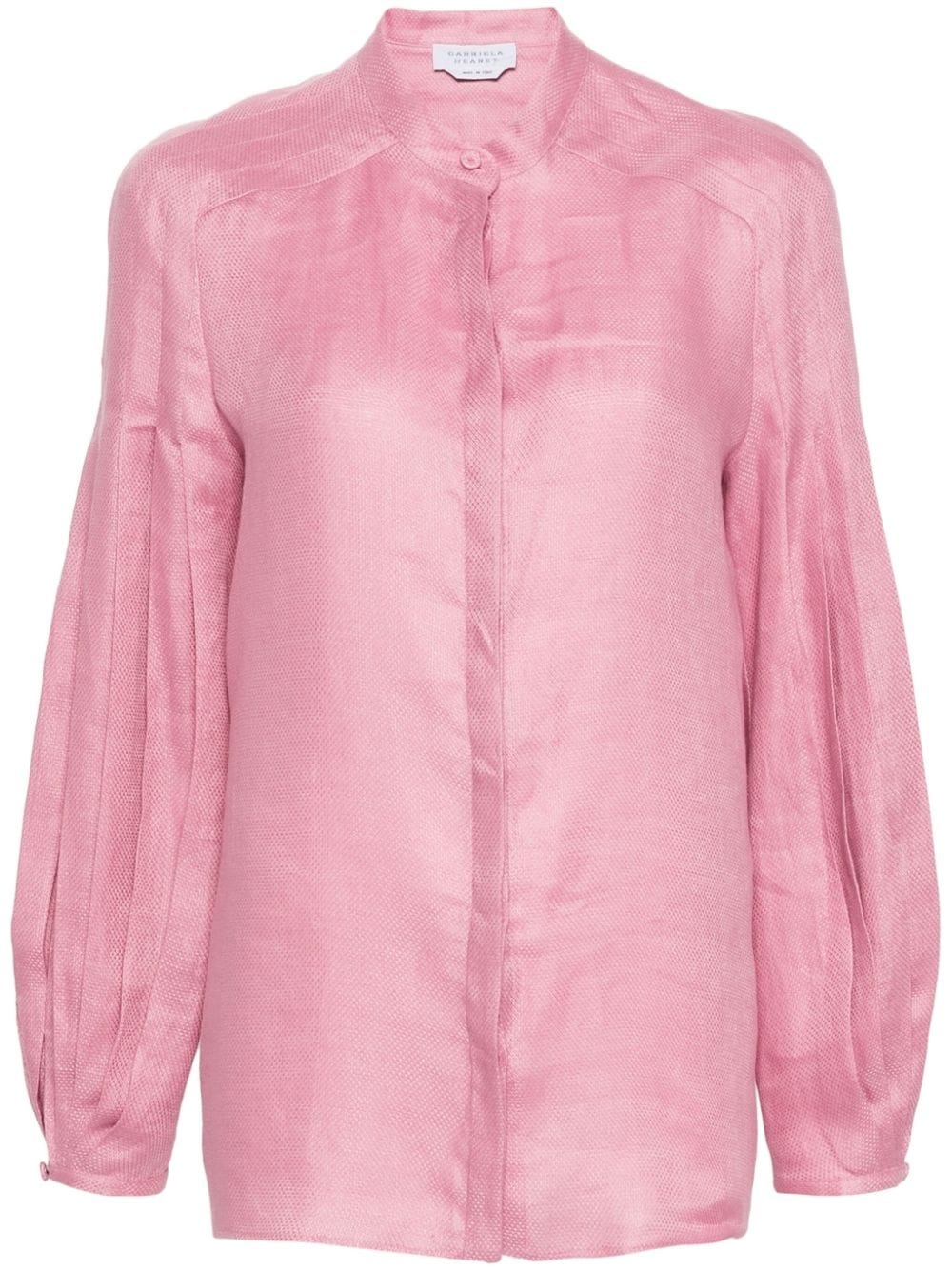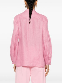 Laetitia linen pleated blouse Highlights - Rose quartz pink - Linen/flax - Basket weave - Textured finish - Round neck - Long sleeves - Pleat detailing - Buttoned cuffs - Straight hem - Concealed front button fastening Made in Italy Composition Linen/Flax 100% SIZE & FIT Model measurements Height 5 ft 10 in(1.78 m) Bust/Chest 33.07 in(84 cm) Hips 36.61 in(93 cm) Waist 24.8 in(63 cm) FittingInformation Designed for a relaxed fit, this piece allows for comfort and movement when worn Made from a midweight non-stretch fabric This piece fits true to size – take your usual size