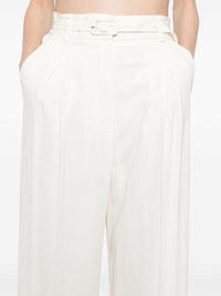 Maura trousers Highlights - Ivory - Silk - Crepe - Concealed fly and button fastening - Belt loops - Pleat detailing - Detachable and adjustable waist belt - Two side slash pockets - Two rear welt pockets - Straight leg - Full-length Made in Italy Composition Silk 100% SIZE & FIT Model measurements Height 5 ft 9 in(1.76 m) Bust/Chest 31.1 in(79 cm) Hips 35.03 in(89 cm) Waist 24.4 in(62 cm) Measurement BACK RISE 17.71 in(45 cm) FRONT RISE 13.38 in(34 cm) Hem Width 12.2 in(31 cm) HIPS 35.43 in(90 cm) INSIDE LEG 34.64 in(88 cm) WAIST 25.98 in(66 cm) FittingInformation Designed with a wide-leg cut, these trousers allow for a close fit at the waist and offer a loose and roomy fit over the leg The belt offers adjustability for fitted preferences Made from a midweight non-stretch fabric Washing instructions Dry Clean Only