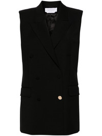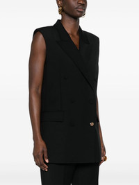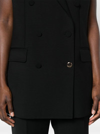 Mayte double-breasted vest Highlights - Black - Wool - Tailored design - Peak lapels - Double-breasted button fastening - Sleeveless - Shoulder pads - Two side flap pockets - Full lining - American rear vent - Straight hem Made in Italy Composition Lining: Cupro 100% Outer: Wool 100% SIZE & FIT Model measurements Height 5 ft 10 in(1.77 m) Bust/Chest 32.28 in(82 cm) Hips 35.03 in(89 cm) Waist 25.19 in(64 cm) FittingInformation Designed for a slim fit that sits just away from the body offering a close yet comfortable fit The internal shoulder pads offer a structured shape Made from a midweight non-stretch fabric This piece fits true to size – take your usual size