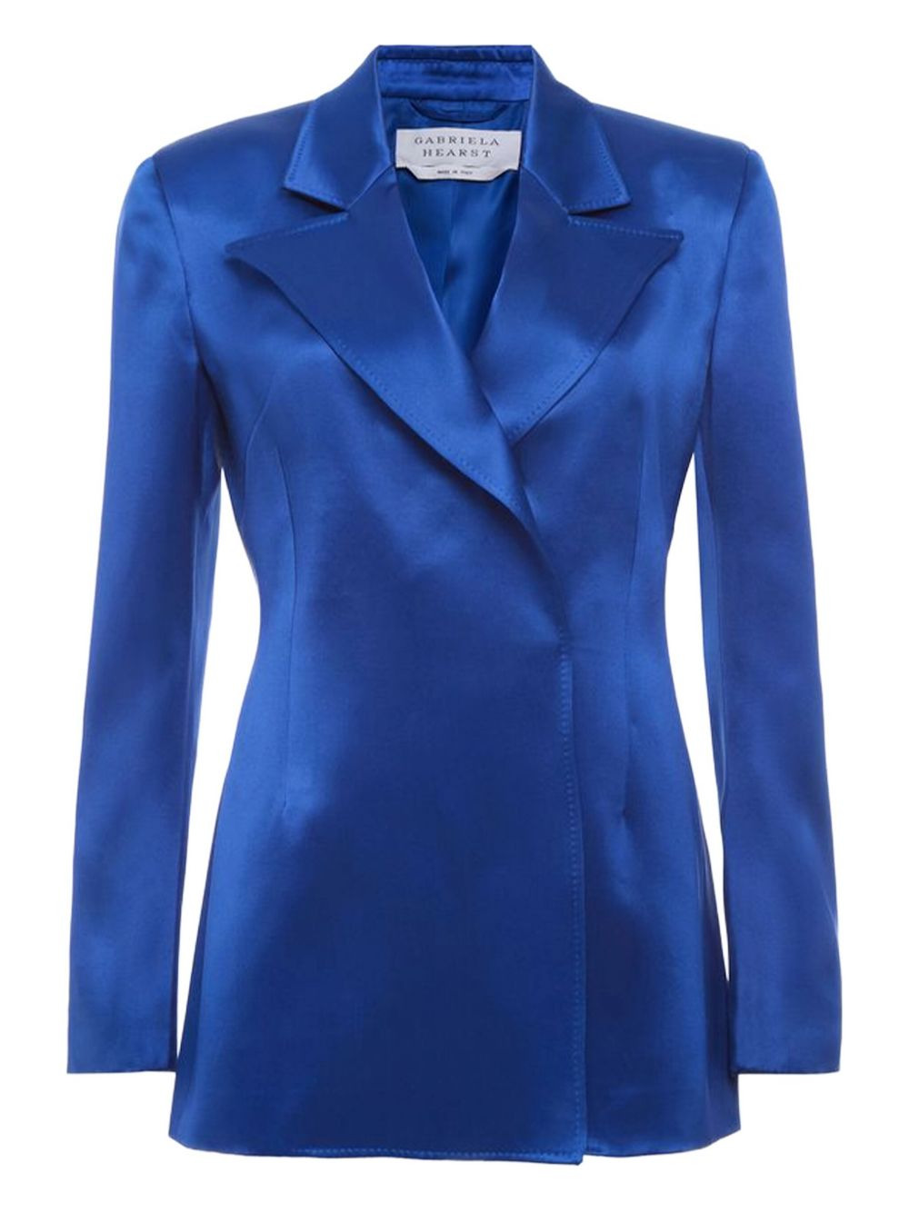 satin overlap blazer Highlights - Royal blue - Satin weave - Notched lapels - Long sleeves - Single breasted - Straight hem Made in Italy Composition Silk 100% Washing instructions Read Manufacturer Guidelines