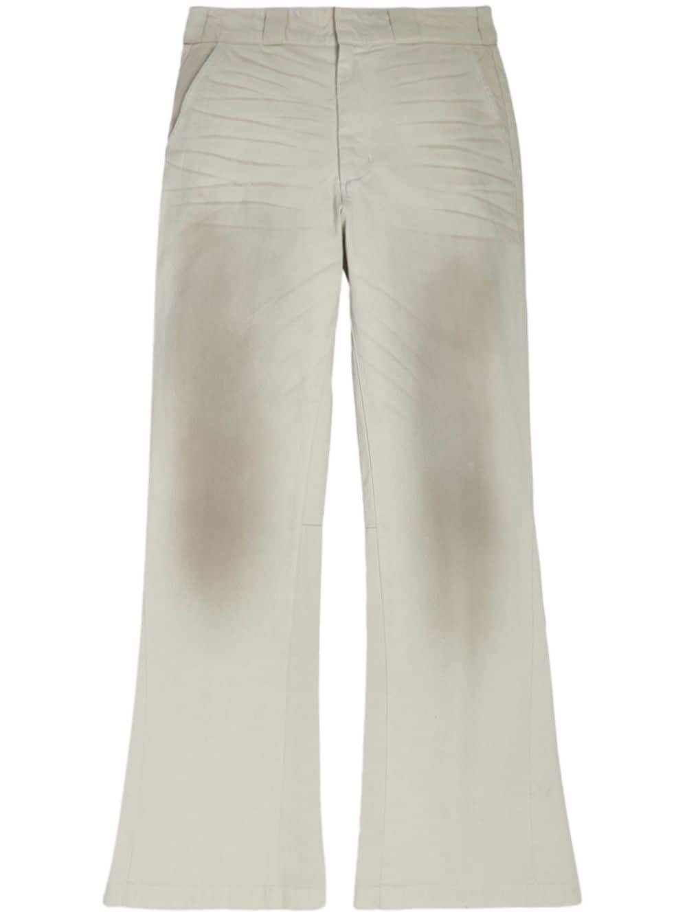 garment-dyed cotton chinos Highlights - Light beige - Cotton - Whiskering effect - Garment dyed - Logo patch to the rear - Belt loops - Concealed front fastening - Flared - Two side inset pockets - Two rear welt pockets Made in United States Composition Cotton 100%