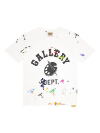 logo-print T-shirt white paint splatter detail crew neck short sleeves Made in United States Composition Cotton 100%