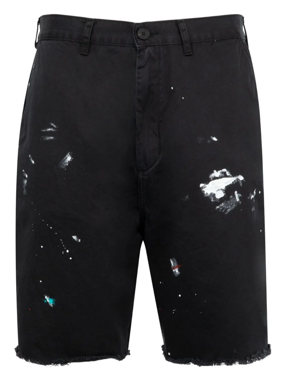 paint-splatter frayed shorts Highlights - Black - Paint-splatter detail - Frayed trim - Rear patch Made in United States Composition Cotton 100% Washing instructions Read Manufacturer Guidelines