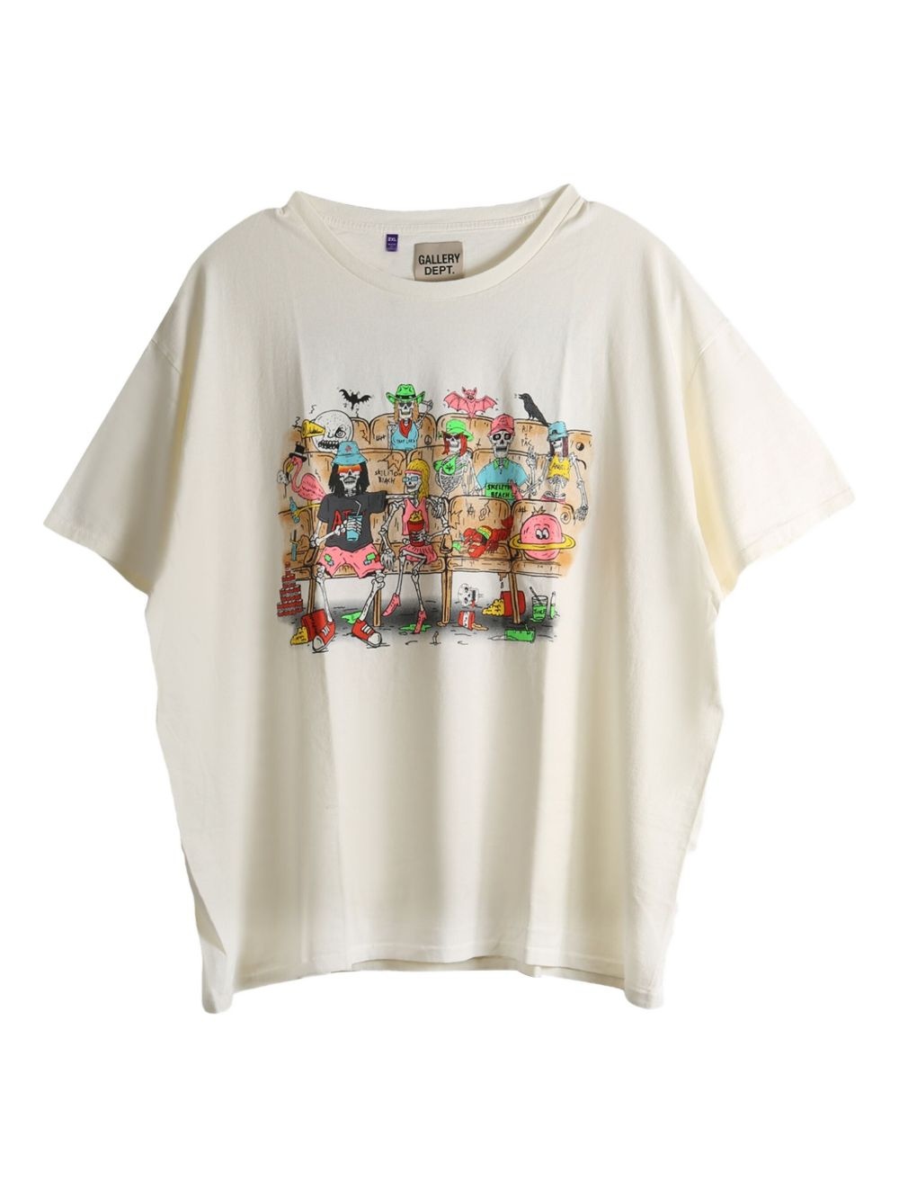 Skeleton Beach Theatre T-shirt Highlights - Off-white - Crew neck - Short sleeves - Graphic print - Cartoon-style illustration - Skeleton motif Made in United States Composition Cotton 100% Washing instructions Read Manufacturer Guidelines