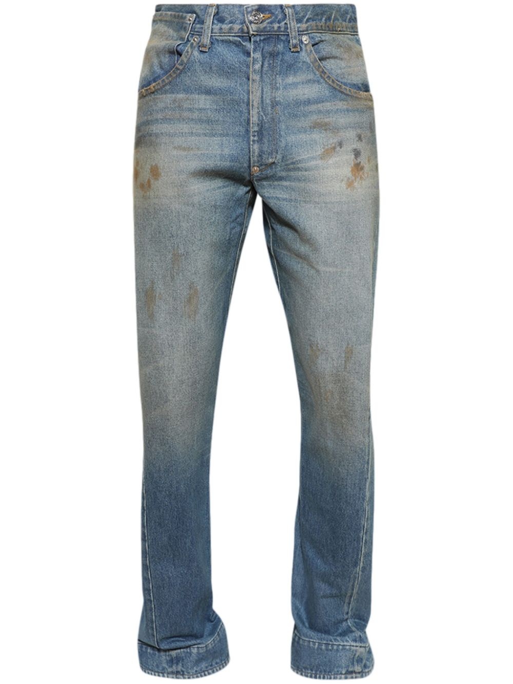 straight-leg jeans Highlights - Blue - Cotton - Denim - Washed denim - Whiskering effect at the thighs - Distressed finish - Front button and zip fastening - Belt loops - Classic five pockets - Logo patch to the rear - Straight leg Made in United States Composition Cotton 100%