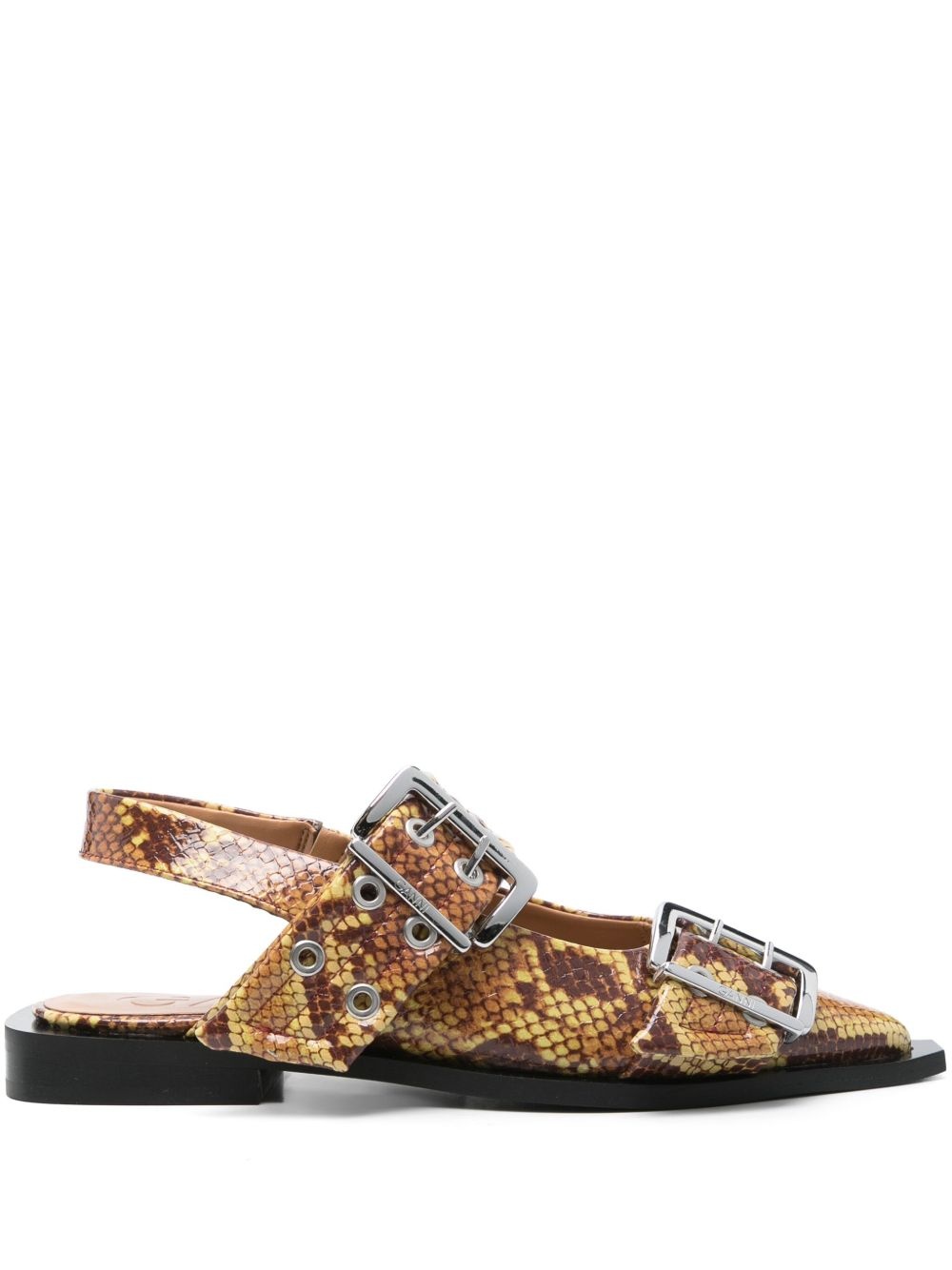 BROWN SNAKE FEMININE BUCKLE BALLERINAS