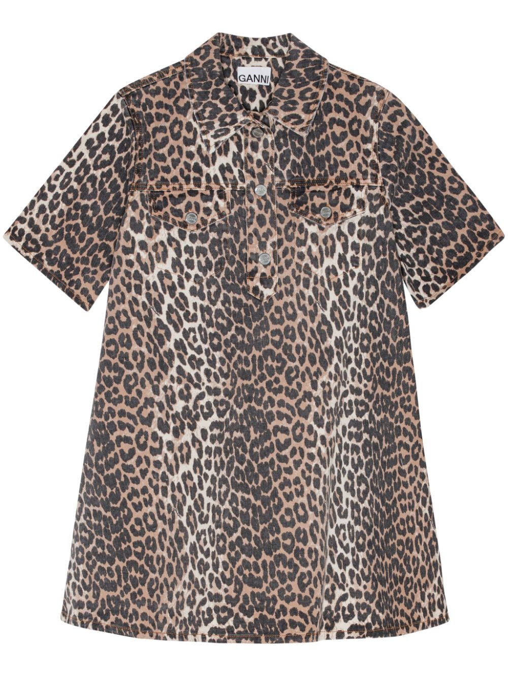 animal-print denim mini skirt Highlights - Brown/multicolour - Stretch organic cotton - Denim - Animal print - Classic collar - Short front button fastening - Short sleeves - Two button-fastening chest pockets - Straight hem Imported Composition Organic Cotton 99%, Elastane 1%