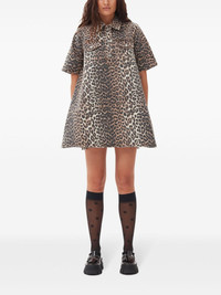 LEOPARD PRINTED DENIM MINI DRESS