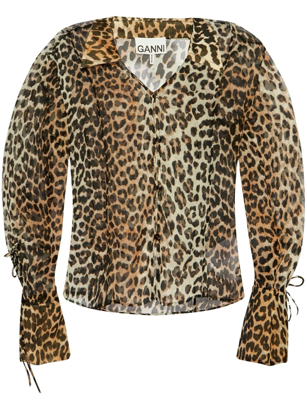 LEOPARD PRINTED CHIFFON SLIM SHIRT